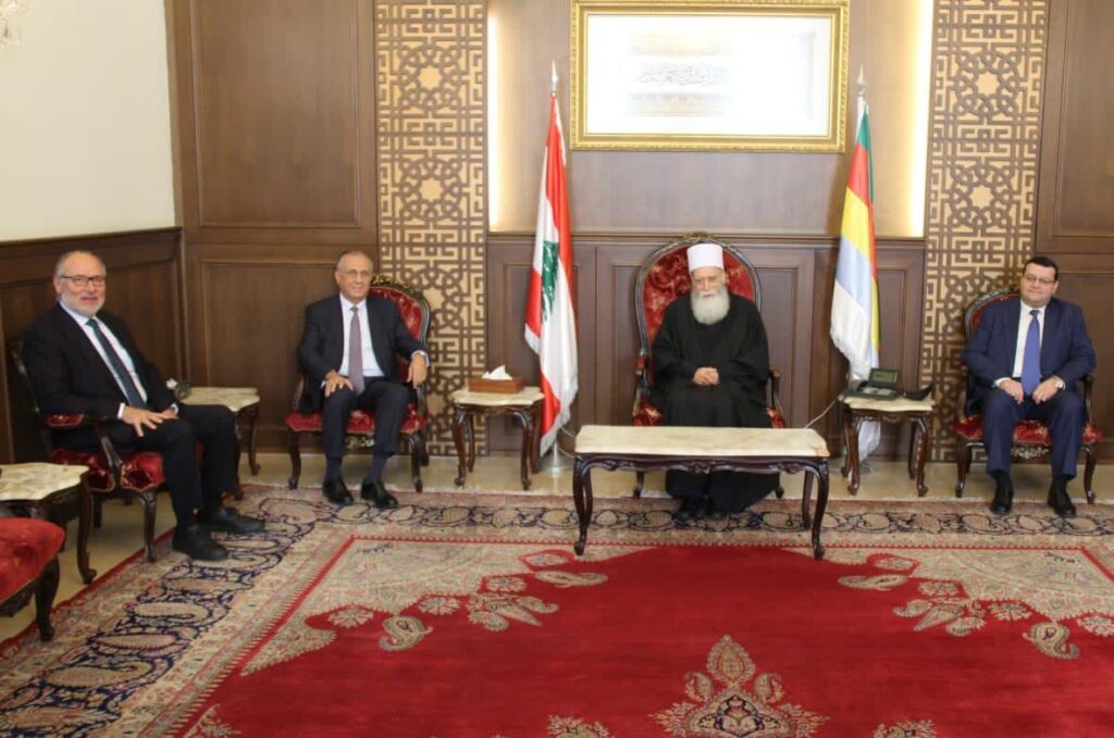 استقبل سماحة شيخ عقل طائفة الموّحدين الدروز الشيخ نعيم حسن في دار الطائفة في بيروت اليوم كلاً من رئيس مجلس ادارة بنك بيروت والبلاد العربية الشيخ غسان عساف، ونائب رئيس مجلس الادارة القاضي عباس الحلبي، ومستشار رئيس الحزب التقدمي الاشتراكي الاستاذ رامي الريّس. وجرى في اللقاء استعراض عدد من القضايا العامة والوطنية، ولا سيما الواقع النقدي راهناً، وكان نقاش في عدد من المسائل والمواضيع ذات الصلة.