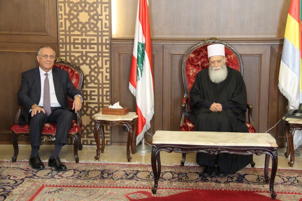 استقبل سماحة شيخ عقل طائفة الموّحدين الدروز الشيخ نعيم حسن في دار الطائفة في بيروت اليوم، سفير مصر في لبنان الدكتور ياسر …