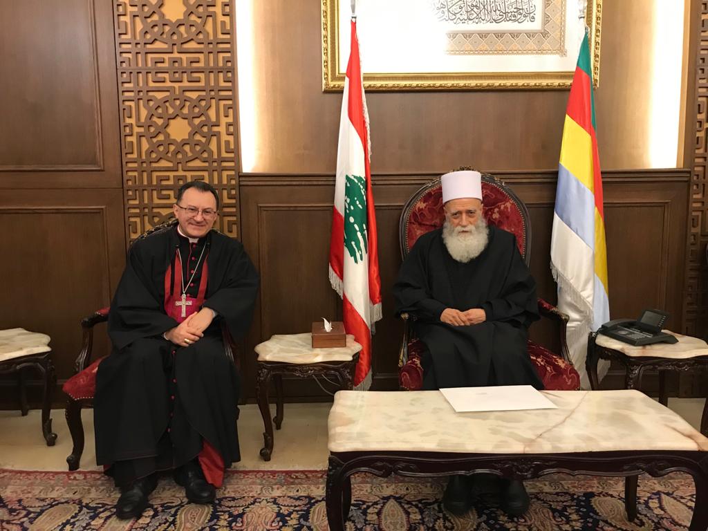 استقبل سماحة شيخ عقل طائفة الموّحدين الدروز الشيخ نعيم حسن في دار الطائفة – فردان اليوم، السفير البابوي في لبنان المونسنيور جوزف …