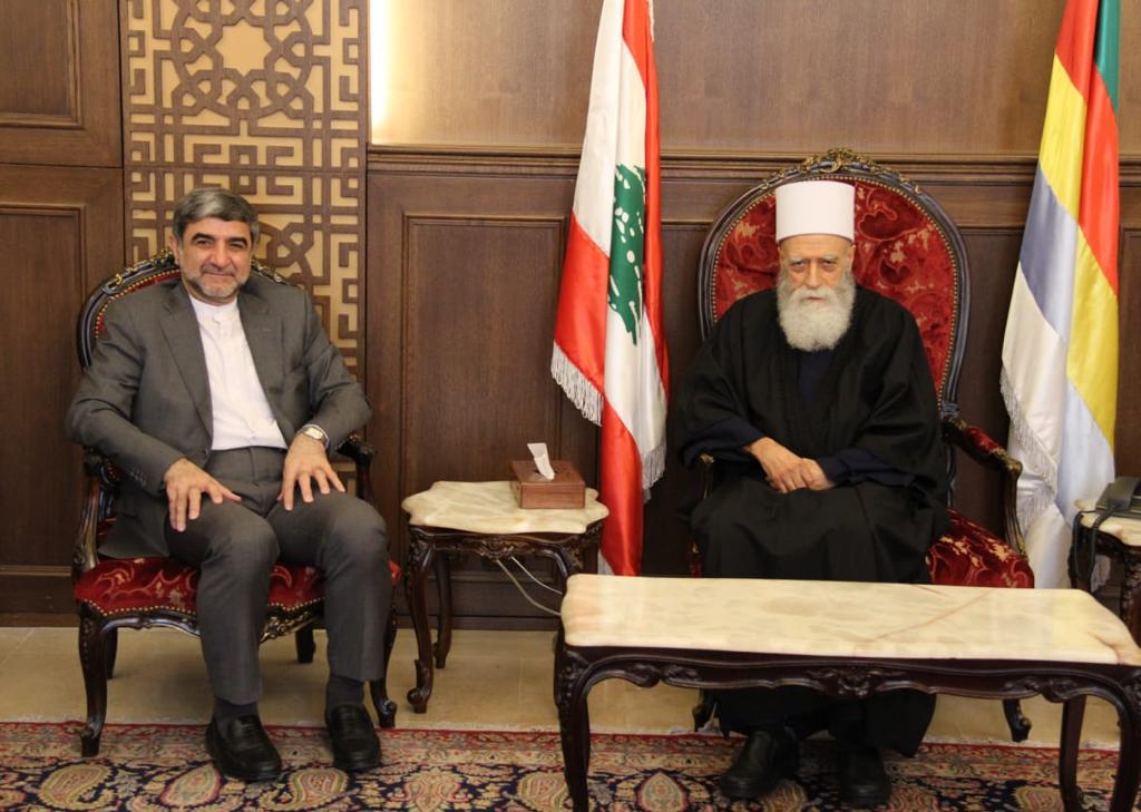 استقبل سماحة شيخ عقل طائفة الموحدين الدروز الشيخ نعيم حسن في دار الطائفة في بيروت اليوم، السفير الإيراني في لبنان محمد جلال …