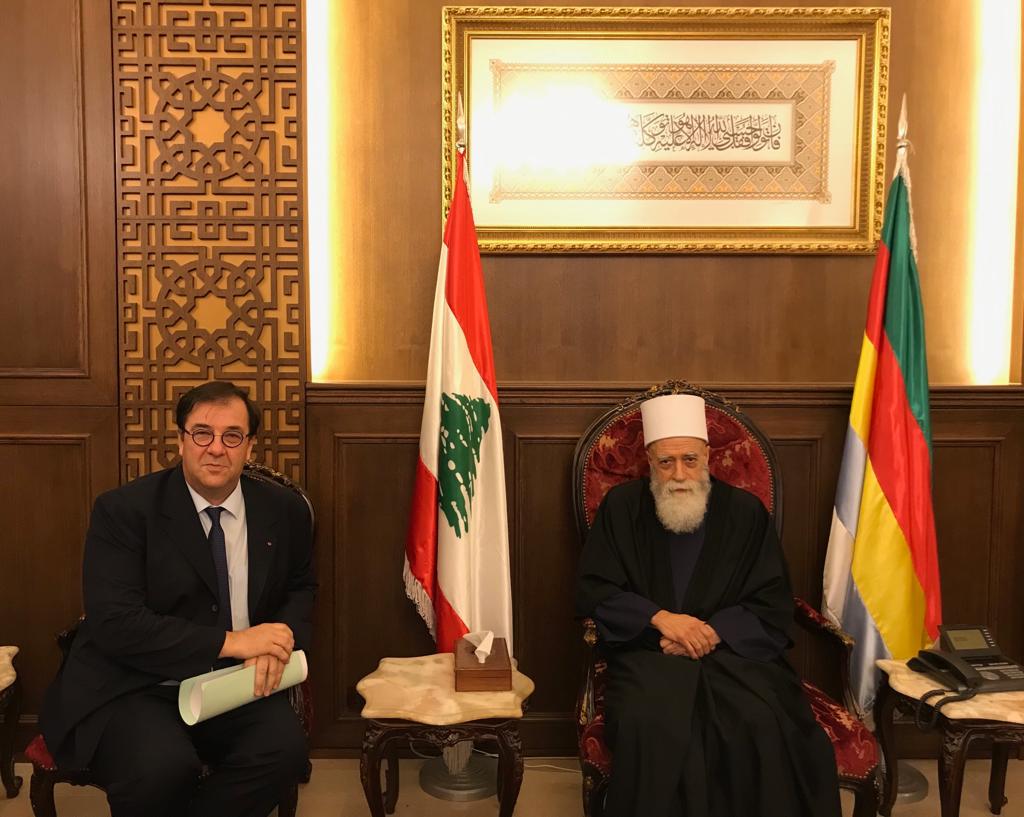 استقبل سماحة شيخ عقل طائفة الموحدين الدروز الشيخ نعيم حسن في دار الطائفة في بيروت السفير الفرنسي في لبنان السيد برونو فوشيه …