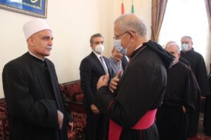 وقال الشيخ الخطيب لجمع الشمل بين كل اللبنانيين وسنكون مع كل القيادات الروحية اللبنانية في تعاون لاجل الأهداف التي تصب في صالح لبنان واللبنانيين خصوصا في الوقت الصعب الذي يمر به الشعب اللبناني ولبنان بأزمات معيشية واجتماعية صعبة نتمنى التعاون جميعا لاخراج البلد من هذا الواقع، نتمنى لسماحته التوفيق وللبنان واللبنانيين السلام والأمان”.