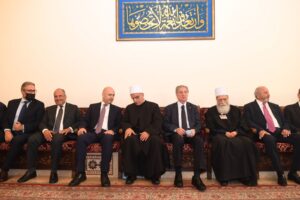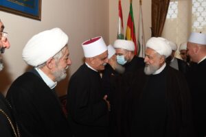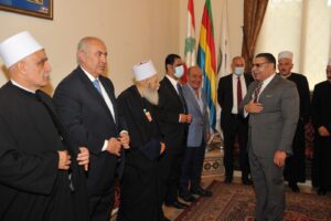 كذلك شارك ومفتي الجمهورية اللبنانية الشيخ عبد اللطيف دريان على راس وفد من قضاة الشرع والمشايخ، وقال المفتي دريان،”انه يوم مبارك في زيارة دار طائفة الموحدين من اجل التهنئة بشيخ عقل يشهد له بمسيرته الثقافية والاجتماعية قبل توليه المنصب الكريم، ولنقول لسماحة الشيخ نعيم حسن اننا سنبقى على التواصل مقدرين جدا المسيرة الرائعة التي تواكبنا فيها معا تعزيزا الوحدتين الوطنية والإسلامية. ونقول لسماحة الشيخ سامي بكفاءة وجدارة ونحن نعرفك من خلال المؤتمرات اللقاءات التي تؤكد على وسطية الإسلام واعتداله وروح الحوار بين مكوّنات المجتمع اللبناني المتنوع، نحن الى جانبك ومعك في استكمال مسيرة الخير والعطاء ووحدة الإسلامية والوطنية والعيش الواحد بين جميع مكونات المتنوع، وستبقى هذه الدار الكرامة والشهامة والوطنية والعروبة”.