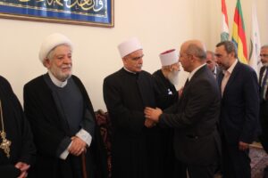 والسيد علي فضل الله، ووفدا من مشايخ وإدارة مؤسسة العرفان التوحيدية برئاسة الشيخ نزيه رافع، ووفدا من جمعية وإدارة وهيئة الاشراق التعليمية يتقدمه الشيخ الدكتور وجدي الجردي، ووفدا من مؤسسة اديان، ورئيس مؤسسة المفتي الشيخ حسن خالد سعد الدين خالد، ومدير عام المبرات الإسلامية الدكتور محمد باقر فضل الله، والحركة الثقافية في انطلياس، ووفدا من مجموعة حل النزاعات، ووفدا من رابطة العمل الاجتماعي، ووفدا من جامعة سيدة اللويزة، وملتقى الثقافات والأديان، والجمعية الخيرية الإسلامية العاملية.