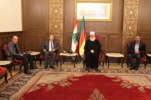 واستقبل سماحة الشيخ ابي المنى وفدا من نادي “الليون بيروت هيريتدج” ضم: رئيس النادي الامير فادي رسلان، نائب الرئيس الثاني وليد سعسوع ورئيسة لجنة النشاطات اليان قزي، بحضور امين سر المجلس المذهبي المحامي نزار البراضعي وعضو المجلس نادر فخر، وعرض الوفد رؤيته المستقبلية في كيفية التعاون لخدمة ومساعدة العائلات الاكثر حاجة، ومقدّما لسماحته درعا تقديرية تمثل صورته كهدية رمزية.