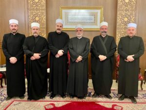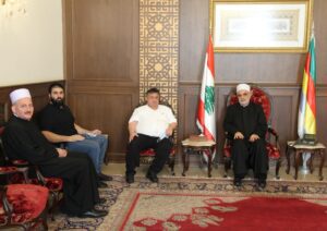 كما استقبل شيخ العقل وفدا من “تجمع بلديات العرقوب والحرف في الشوف” يرافقه رئيس دير مار مارون في مجد المعوش الاب سمير غاوي، برئاسة رئيس بلدية مجد المعوش روميو ياغي، ونائب الرئيس رئيس بلدية الباروك ايلي نخلة، ورؤساء بلديات الورهانية سمير غانم، وعين زحلتا نعيم سعد، والفوارة غسان طانيوس، وبريح صبحي لحود، وبتلون مروان قيس، وبيت الدين ناجي عبود، والبيرة رفيق مسلّم، وكفرنيس سليمان لبّس، ووادي الست مفيد ابي حنّا.
