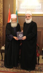 التقى سماحة شيخ العقل لطائفة الموحدين الدروز الشيخ الدكتور سامي ابي المنى في دار الطائفة-بيروت اليوم سماحة الشيخ القاضي نعيم حسن مقدّما كتابه الصادر حديثا: “مشيخة العقل والمجلس المذهبي 2006-2021 – شيخ عقل طائفة الموحدين الدروز القاضي الشيخ نعيم حسن” الذي تضمن محاور واجزاء تلخّص ولاية سماحة الشيخ حسن لمدة 15 عاما وما تخللها من انشطة واعمال وانجازات.