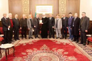 وقدّم الوفد الى سماحته كتاب الجامعة بعنوان: “ديوان السنين في تاريخ آل ناصر الدين”.