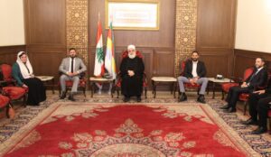 كما استقبل سماحته وفدا من “حملة شجرة لكل شهيد في الجيش اللبناني” برئاسة نهيلة صعب ضم الاعضاء: ايلي فرح، الاعلامية جمانة عيّاد ودومينيك ابراهيم. وعرض الوفد مع سماحته انشطة الحملة واهدافها العامة.