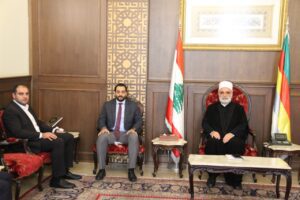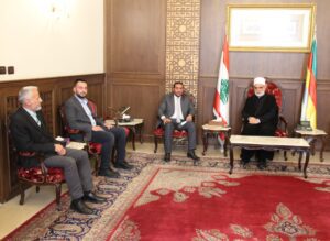 واستقبل الشيخ ابي المنى رئيس مجلس امناء “متحف كهف الفنون” رئيس صندوق المهجرين السابق د. شادي مسعد، يرافقه الفنان غاندي بو ذياب، لتهنئة سماحته وتاييد مواقفه الوطنية والروحية الجامعة، واطلاعه على نشاط المحترف وخططه المستقبلية.