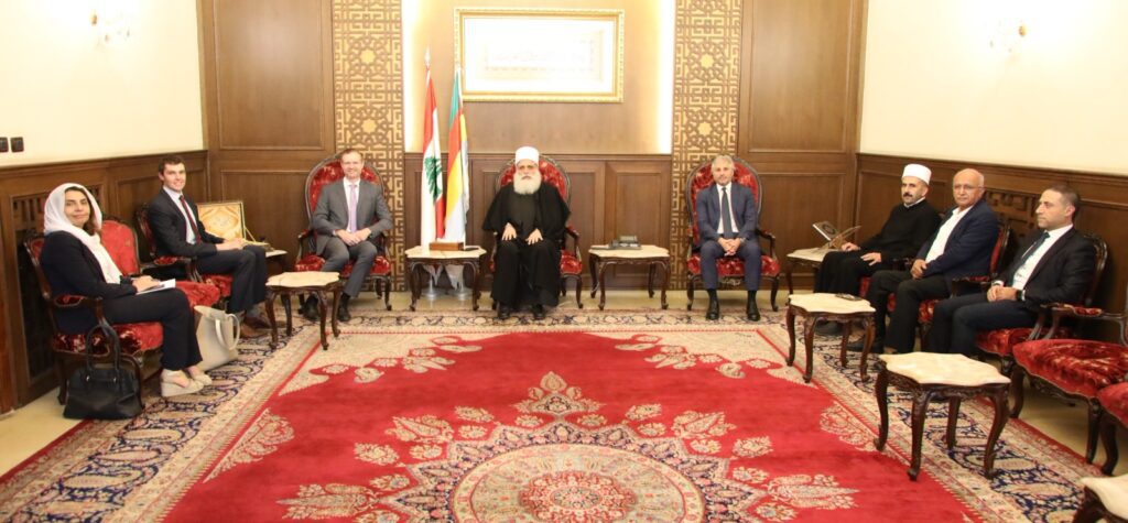 التقى سماحة شيخ العقل لطائفة الموحدين الدروز الشيخ الدكتور سامي أبي المنى في دار الطائفة في بيروت اليوم وفدا من أركان السفارة الأميركية في لبنان ضم: المستشار السياسي والاقتصادي جايمي أوميلا، منسق المساعدات الخارجية إيثان لينش وفيرونيكا شيو مسؤولة الشؤون الدينية، بحضور أعضاء من المجلس المذهبي ومستشارين في مشيخة العقل.
