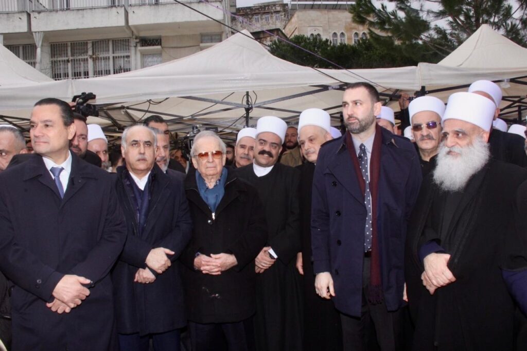 وحضر الذكرى إلى جانب سماحة الشيخ أبي المنى الذي حضر على رأس وفد ضم قضاة من المذهب الدرزي ومن أعضاء المجلس المذهبي، ومشايخ، كذلك النائب جنبلاط على رأس وفد نيابي وقيادي، ضم النواب: مروان حمادة، هادي أبو الحسن، وائل أبو فاعور، فيصل الصايغ، بلال عبدالله، أكرم شهيب ممثلاً بنجله وائل، ومستشار النائب جنبلاط حسام حرب، وأمين السر العام في “التقدمي” ظافر ناصر، ونائب رئيس الحزب زاهر رعد، وأعضاء مجلس القيادة المحامية لما حريز ورينا الحسنية، ورئيس اللجنة الانتخابية الدكتور وليد صافي، ومفوضي “التقدمي”: يوسف دعيبس (الداخلية)، عصام الصايغ (الإعداد والتوجيه)، بسام صافي (الاغتراب)، عبدالله ملاعب (الإعلام)، عارف أبو فراج (الشباب)، ووكلاء الداخلية: عمر غنام (الشوف)، عارف أبو منصور (البقاع الجنوبي)، ميلار السيد (إقليم الخروب)، جنبلاط غريزي (الجرد)، بلال جابر (الغرب)، سامر الكاخي (حاصبيا-مرجعيون) والقيادي خضر الغضبان والدكتور ناصر زيدان.