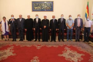 والتقى سماحته وفدا من رجال الاعمال والمغتربين الدروز ضم السادة، كميل سري الدين، جمال الجوهري، عصام أبو الحسن، غسان العريضي، جميل راجح، خالد العطّار، وسام الجوهري، عزات عيد، محمود إبراهيم، وريّان ابي المنى.