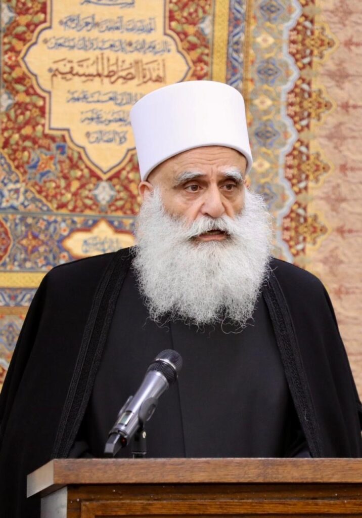 إنّ طائفةَ الموحّدينَ الدروزِ كانت وستبقى ناهجةً نهجَ الوسطية والاعتدال، ومعتزَّةً بدورِها اللاحمِ وبعلاقاتها المُتّزنةِ معَ أبناء الوطن كافةً، مُحافِظةً على هُويّتِها اللبنانيةِ العربية، بالرغم من صراخِ أبواقٍ مُضلِّلة مُنحرفة، ومُحافظةً على هُويّتها الإسلاميةِ التوحيديّة، بالرغم من ضجيج أصواتٍ مُشكِّكة مُتطرّفة، متيقّنةً أنّ لا أمنَ ولا أمانَ لها ولشقيقاتِها العائلات الروحية الكريمة إلَّا بالشراكة الروحية الوطنية، وبما ينتجُ عنها من شراكةٍ اقتصادية تنموية،تحقّقُ للشعبِ أمنَه الوطنيَّ والغذائي، وتُبدِّدُ هواجسَ شبابِه وتعزّزُ ثقتَهم بالوطن”.