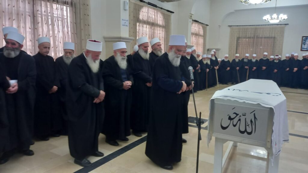 وقدّم سماحة شيخ العقل شهادة بالراحل، قائلا: من المؤمنين رجال صدقوا ما عاهدوا الله عليه فمنهم من قضى نحبه ومنهم من ينتظر وما بدلوا تبديلا. نودع اليوم رجلاً من أولئك الرجال الرجال الذين عرفهم الجبل نخبةً من اهل الفضل والاندفاع عندما احتاجت الارض سواعد الابطال وهمم الرجال وألقاب النضال، فكان “الطيار” الشيخ فؤاد أولاً بين أولئك الأشداء الأوائل “أبناء التوحيد”، باندفاعه وثباته وإيمانه وشجاعته وحكمته، قائداً مناضلاً حاضناً للشباب، مشدداً العزائم، معتمداً، كما في كل مرحلة من عمره، على ثبات العقيدة والالتزام بمسلك التوحيد والعرفان، مدججاً بسلاح التقوى، ويداً بيد مع أخيه المرحوم الشيخ أبو وسام، مناضلين معاً في ساحات الدفاع عن الأرض والعرض، كما في مجالس الدين والعبادة، عاشا معاً قريبين ورحلا معاً متقاربين لا يفصل رحيلهما سوى أسبوعين بالتمام، فهنيئاً لهما ما عملاه وما حملاه، هنيئا لهما ما تميزا به من شجاعة وكرم وتقوى، ولتبق سيرتهما مدرسة للأبناء والأحفاد، وليبق الطيار محلقاً بروحه الطيبة في سماء بيصور الأبية، يعلّم بسيرته العطرة الأجيال معنى الرجولة والثبات وقيم التضحية والعطاء وتلبية نداء الأرض والواجب. وختم: هذه شهادة حقٍّ في مقام صدق تسبق الصلاة على روحه الطاهرة، هي بعضٌ من وفاء لمن عرفناه عن كثب في جهاديه الأصغر والأكبر. رحمه الله. وانا لله وانا اليه راجعون.